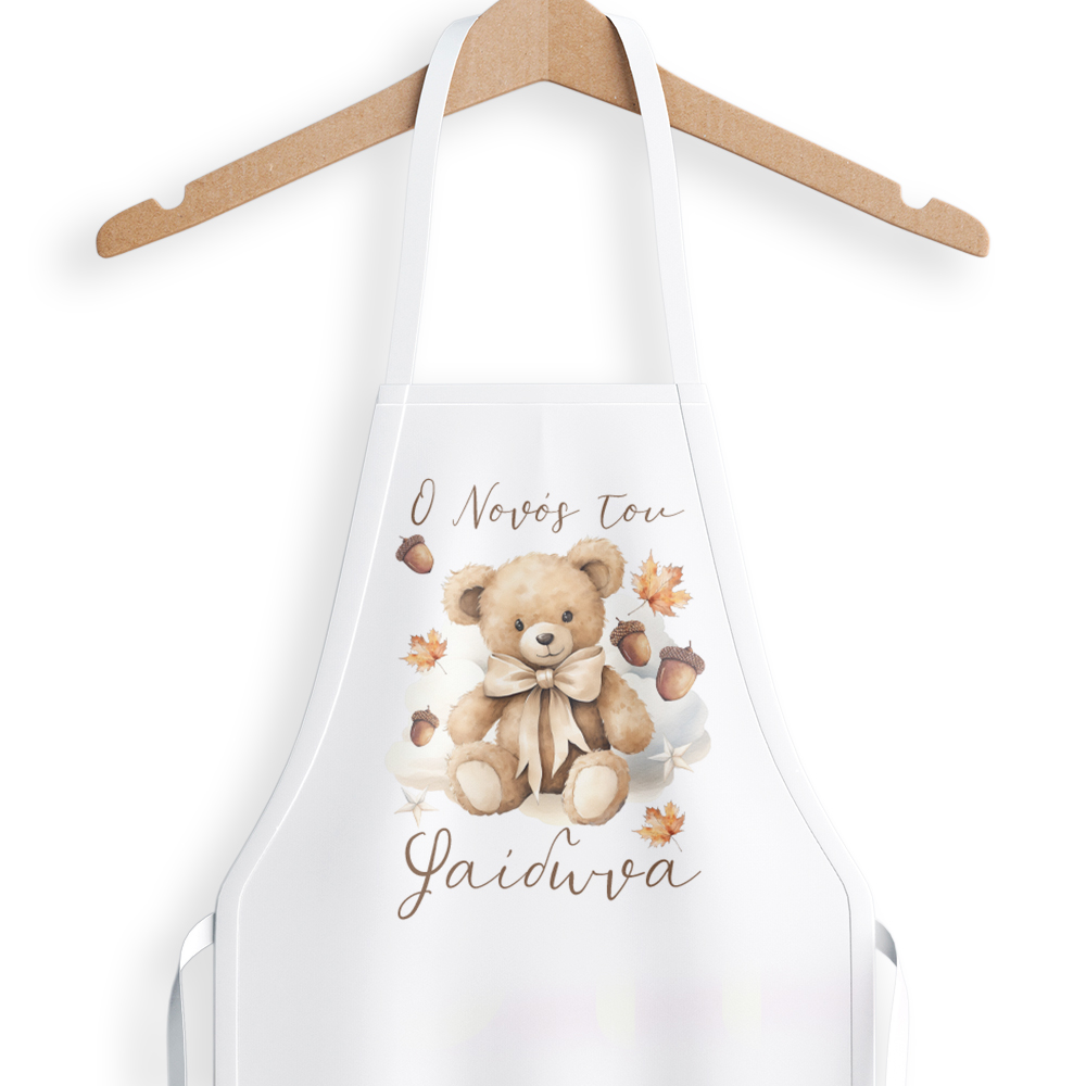 Προσωποποιημένη ποδιά με θέμα Φθινοπωρινό Αρκουδάκι για να την φορά ο νονός ή η νονά του μωρού σας στη βάπτιση του!
