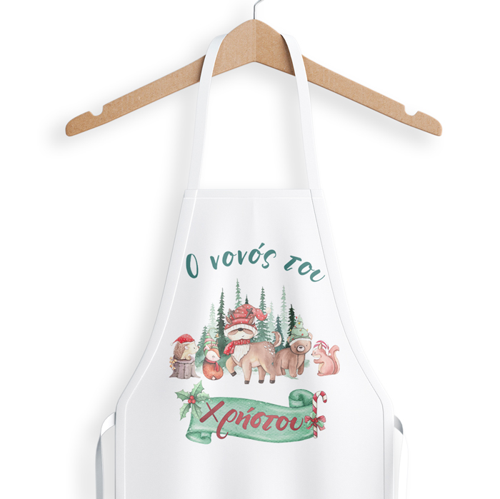 Χριστουγεννιάτικη Προσωποποιημένη ποδιά Woodland για να την φορά ο νονός ή η νονά του μωρού σας στη βάπτιση του!