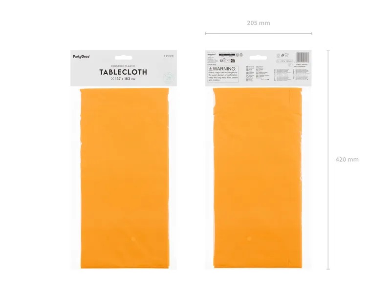 Πορτοκαλί τραπεζομάντηλο πάρτυ, ιδανικό για γενέθλια, baby shower και κάθε γιορτινή εκδήλωση. Προστατεύει το τραπέζι και ολοκληρώνει όμορφα τη διακόσμηση, προσφέροντας πρακτική και κομψή λύση για το πάρτι σας.