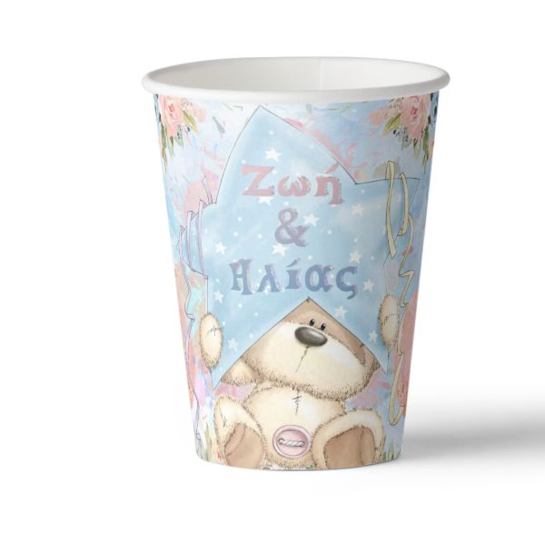 Ποτηράκια με το όνομα των διδύμων και θέμα Αρκουδάκι, για να κεράσετε τους καλεσμένους σας στο τραπέζι της βάπτισης ή του πάρτυ!