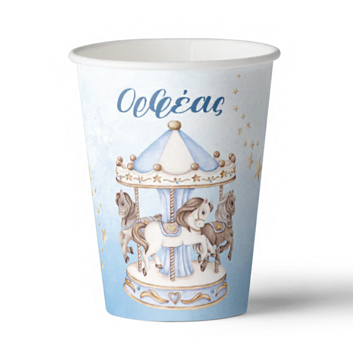 Ποτηράκια με το όνομα του μικρού σας και θέμα καρουζέλ, για να κεράσετε τους καλεσμένους σας στο τραπέζι του πάρτυ ή της βάπτισης!