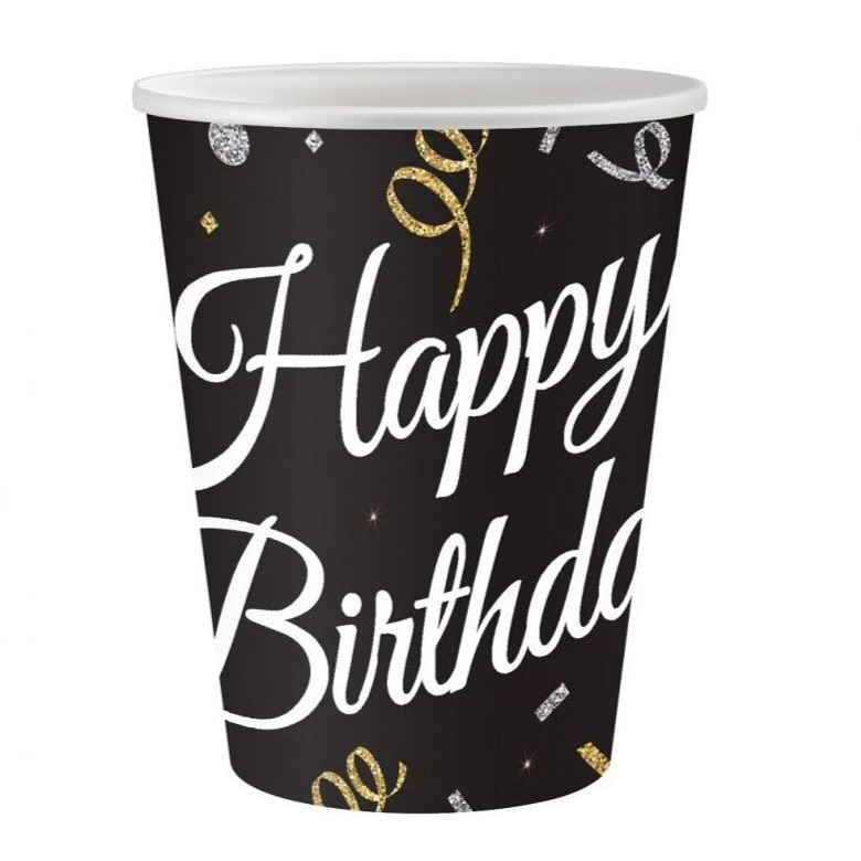 Ποτήρια μαύρα Happy Birthday (6 τεμ)