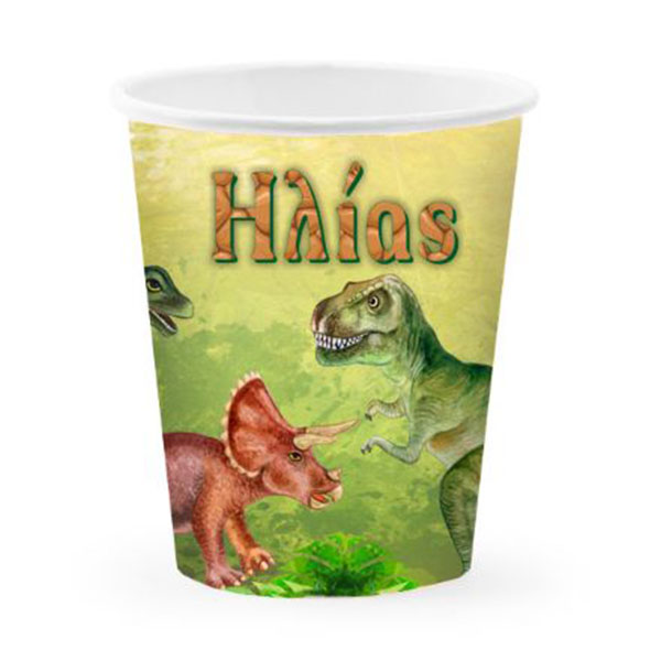 Προσωποποιημένα ποτηράκια με θέμα τους Δεινόσαυρους, για το τραπέζι του θεματικού πάρτυ!