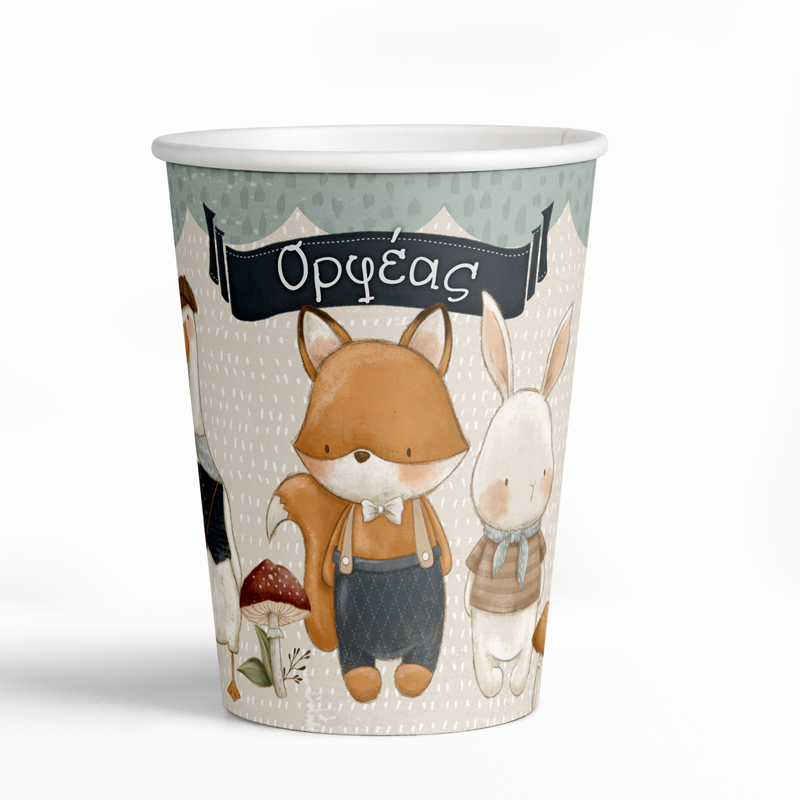 Ποτηράκια με το όνομα του παιδιού και θέμα χαριτωμένα ζώα του δάσους, για να κεράσετε τους καλεσμένους σας!