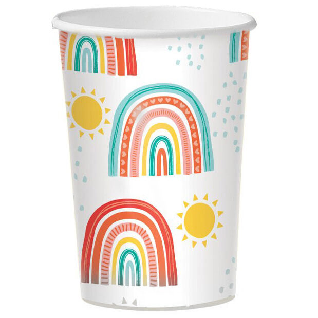Ποτήρια χάρτινα με σχέδιο ρέτρο Ουράνιο Τόξο, για να σερβιριστούν οι καλεσμένοι σας στο θεματικό πάρτυ!
