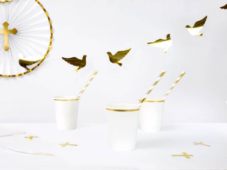 - Το πακέτο περιλαμβάνει 6 χάρτινα ποτηράκια σε λευκό χρώμα με χρυσή μπορντούρα.