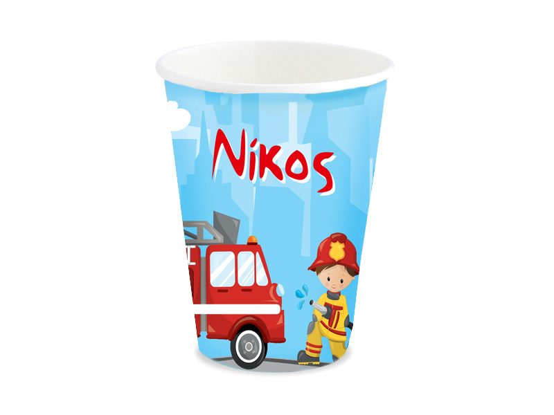Ποτηράκια με το όνομα του μικρού σας και θέμα την Πυροσβεστική, για να κεράσετε τους καλεσμένους σας στο τραπέζι του πάρτυ!