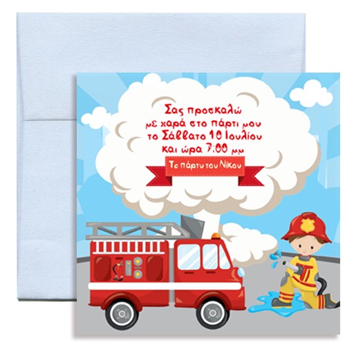 Προσκλήσεις πάρτυ Πυροσβεστική με φάκελο