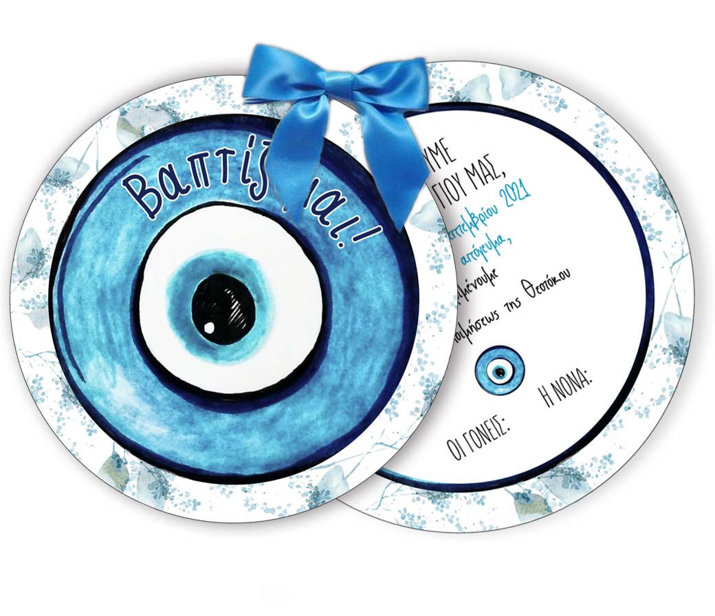 Προσκλητήριο βάπτισης με θέμα το Ματάκι. Ένα ιδιαίτερο σχέδιο προσκλητηρίου για να δώσετε στους καλεσμένους σας.