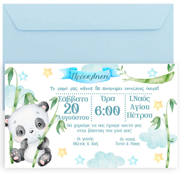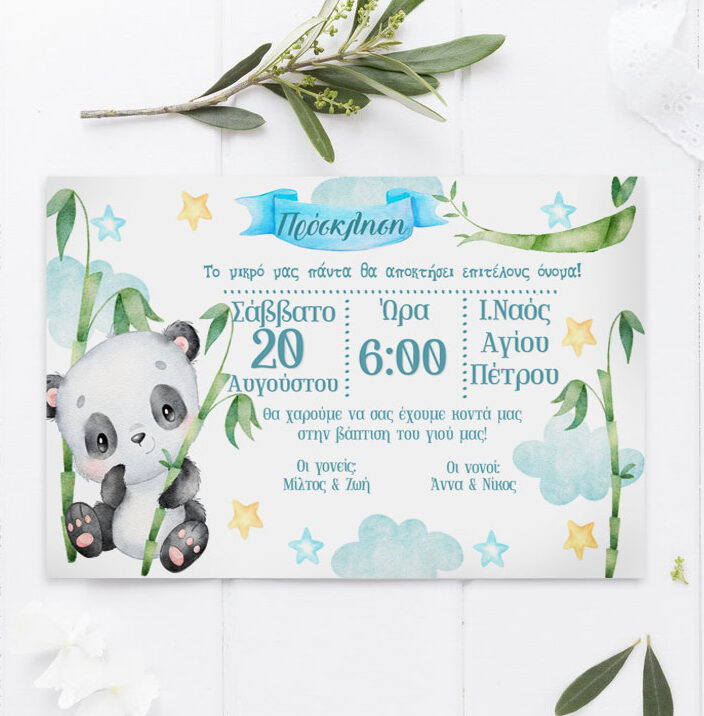 Προσκαλέστε τα αγαπημένα σας άτομα στη βάπτιση του μωρού σας με προσκλητήριο σε θέμα αρκουδάκι Panda!