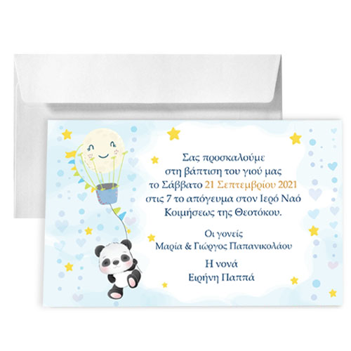 Προσκλητήριο βάπτισης Αρκουδάκι Panda