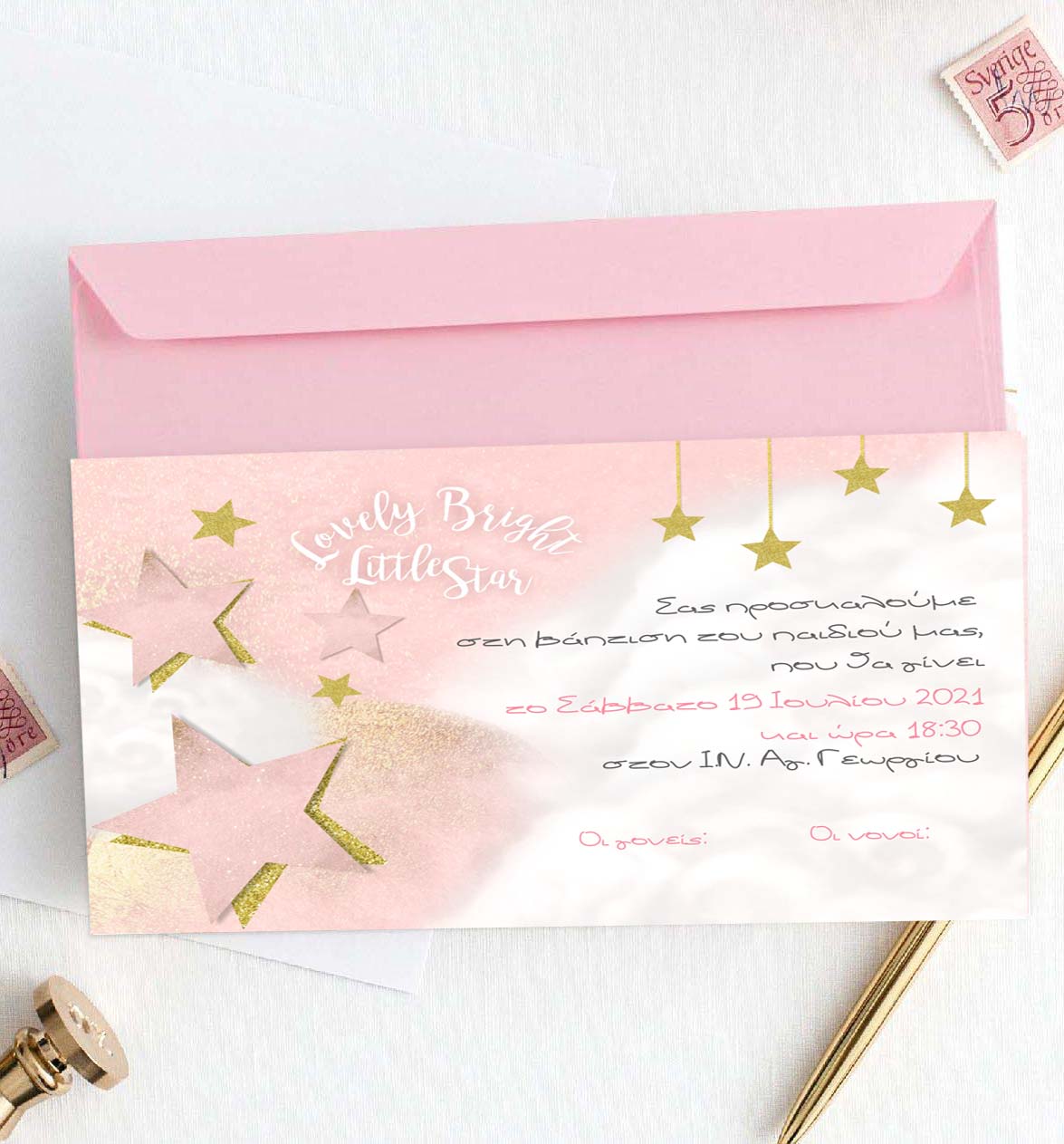 Προσκαλέστε τα αγαπημένα σας άτομα στη βάπτιση του μωρού σας με προσκλητήριο με θέμα το ροζ Αστεράκι!