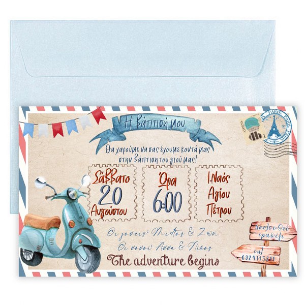 Κατηγορίες: Βάπτιση Βέσπα, Βάπτιση με Θέμα, Είδη Βάπτισης, Προσκλήσεις Βάπτισης - Προσκλητήρια