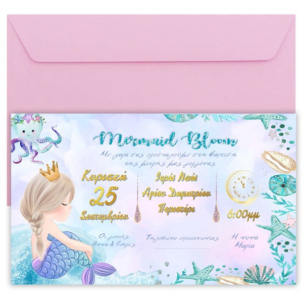 Προσκλητήριο βάπτισης με θέμα Γοργόνα