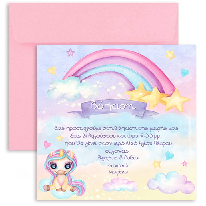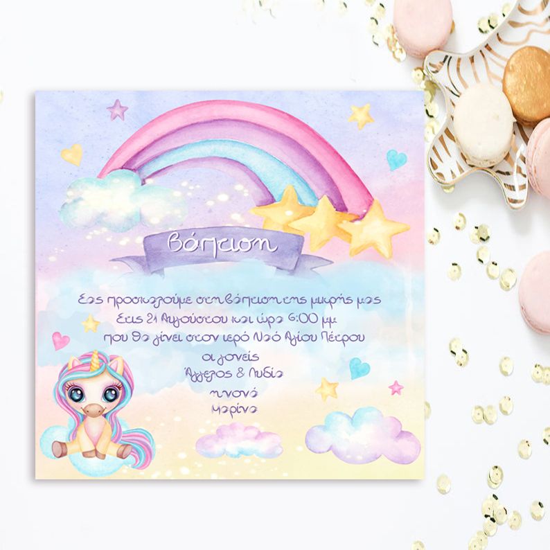 Προσκλητήριο Βάπτισης Μονόκερος & Ουράνιο Τόξο