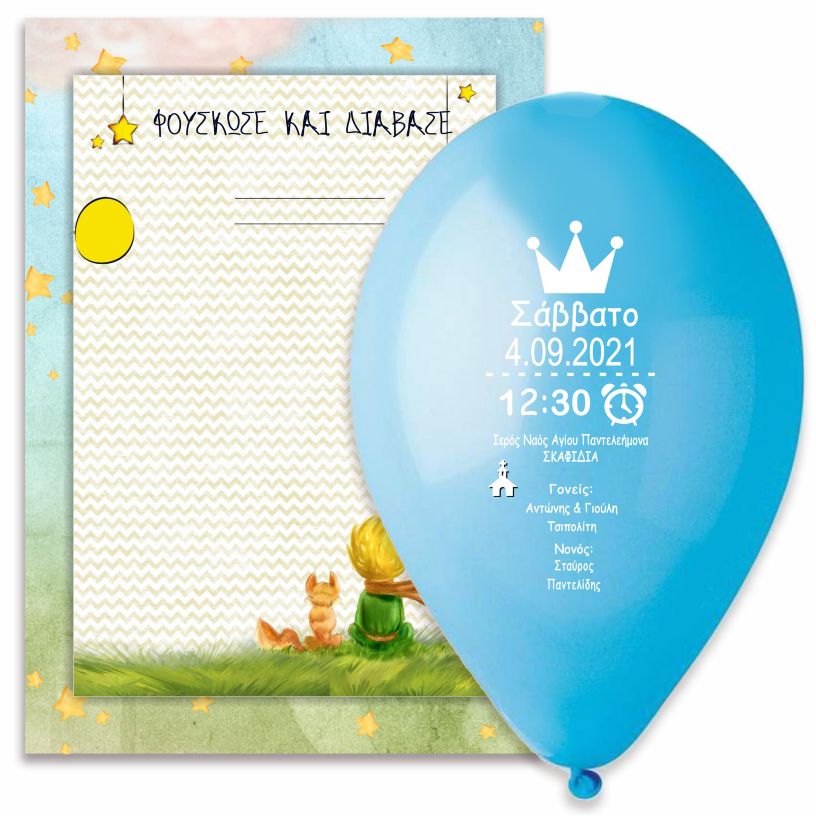 Προσκλητήριο Βάπτισης μπαλόνι Μικρός Πρίγκιπας