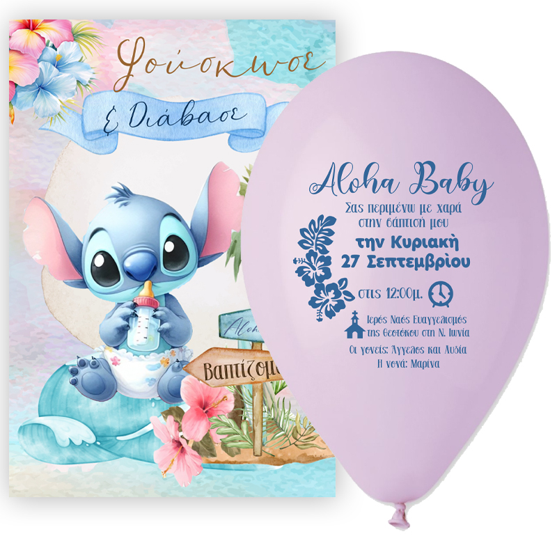 Προσκλητήριο Βάπτισης μπαλόνι – Stitch