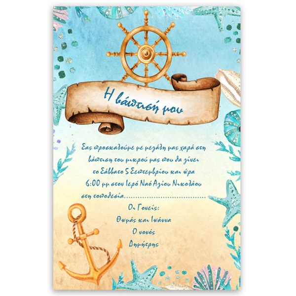 Προσκλητήριο βάπτισης Ναυτικό Πηδάλιο στικάκι με ρολάκι