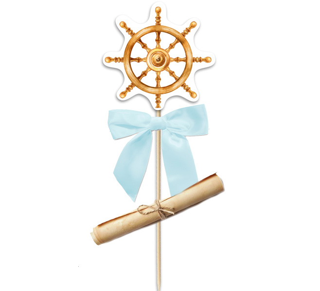 Προσκλητήριο βάπτισης στικάκι Ναυτικό Πηδάλιο με ρολάκι!