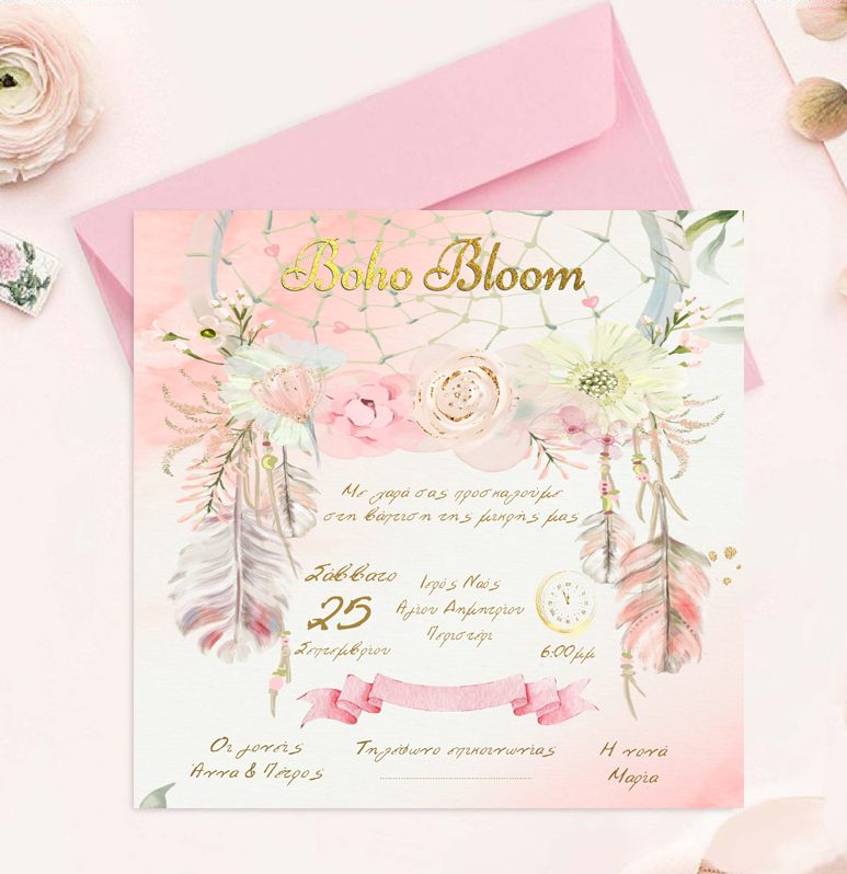 Προσκλητήριο βάπτισης Ονειροπαγίδα Boho Bloom