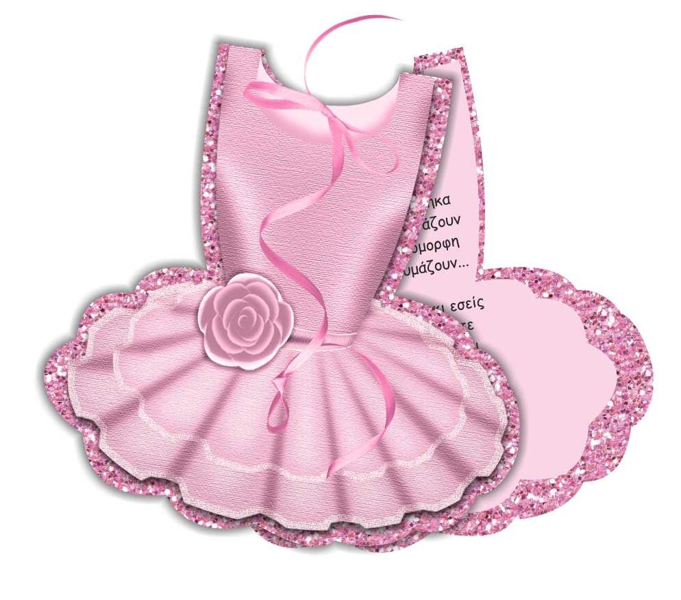 Προσκλητήριο βάπτισης κοπτικό φόρεμα Μπαλαρίνας. Ένα ιδιαίτερο σχέδιο προσκλητηρίου για να δώσετε στους καλεσμένους σας.