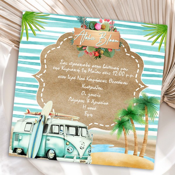 Κατηγορίες: Βάπτιση Aloha Surf, Βάπτιση με Θέμα, Είδη Βάπτισης, Προσκλήσεις Βάπτισης - Προσκλητήρια