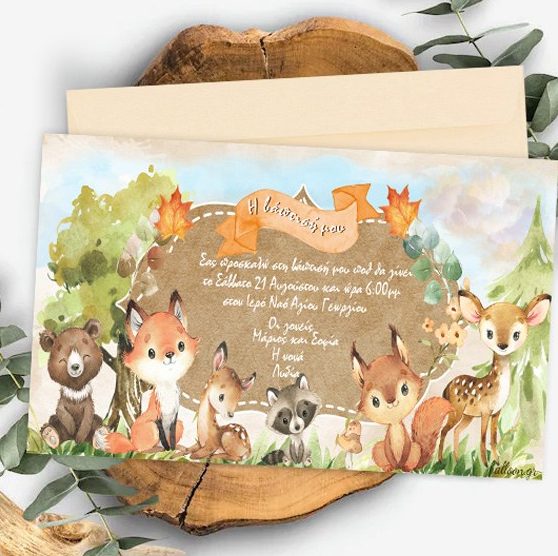 Προσκαλέστε τα αγαπημένα σας άτομα στη βάπτιση του μωρού σας με προσκλητήριο σε θέμα Woodland!