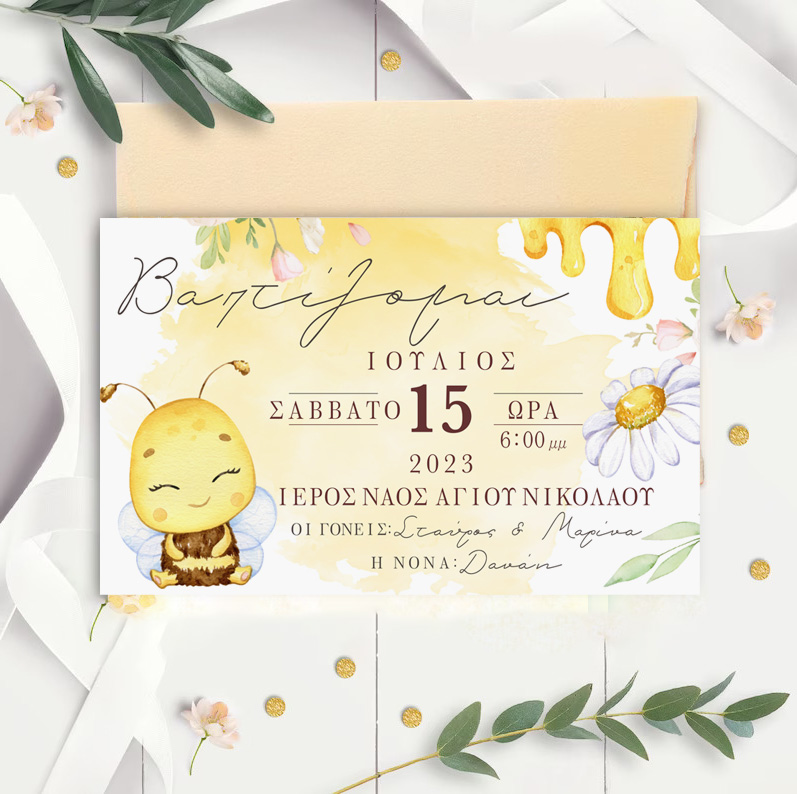 Προσκάλεσε τα αγαπημένα σου πρόσωπα στη βάπτιση του μωρού σου με το προσκλητήριο με την πιο γλυκιά Μέλισσα και κέρδισε τις εντυπώσεις!