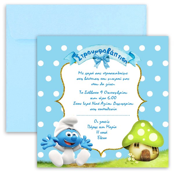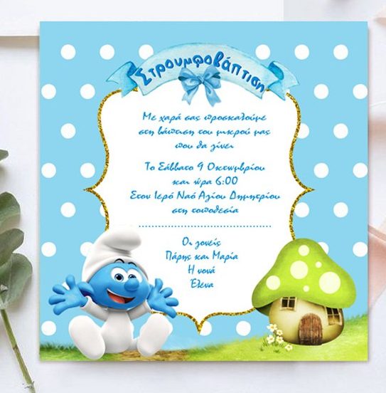 Κατηγορίες: Βάπτιση με Θέμα, Βάπτιση Στρουμφάκια, Είδη Βάπτισης, Προσκλήσεις Βάπτισης - Προσκλητήρια