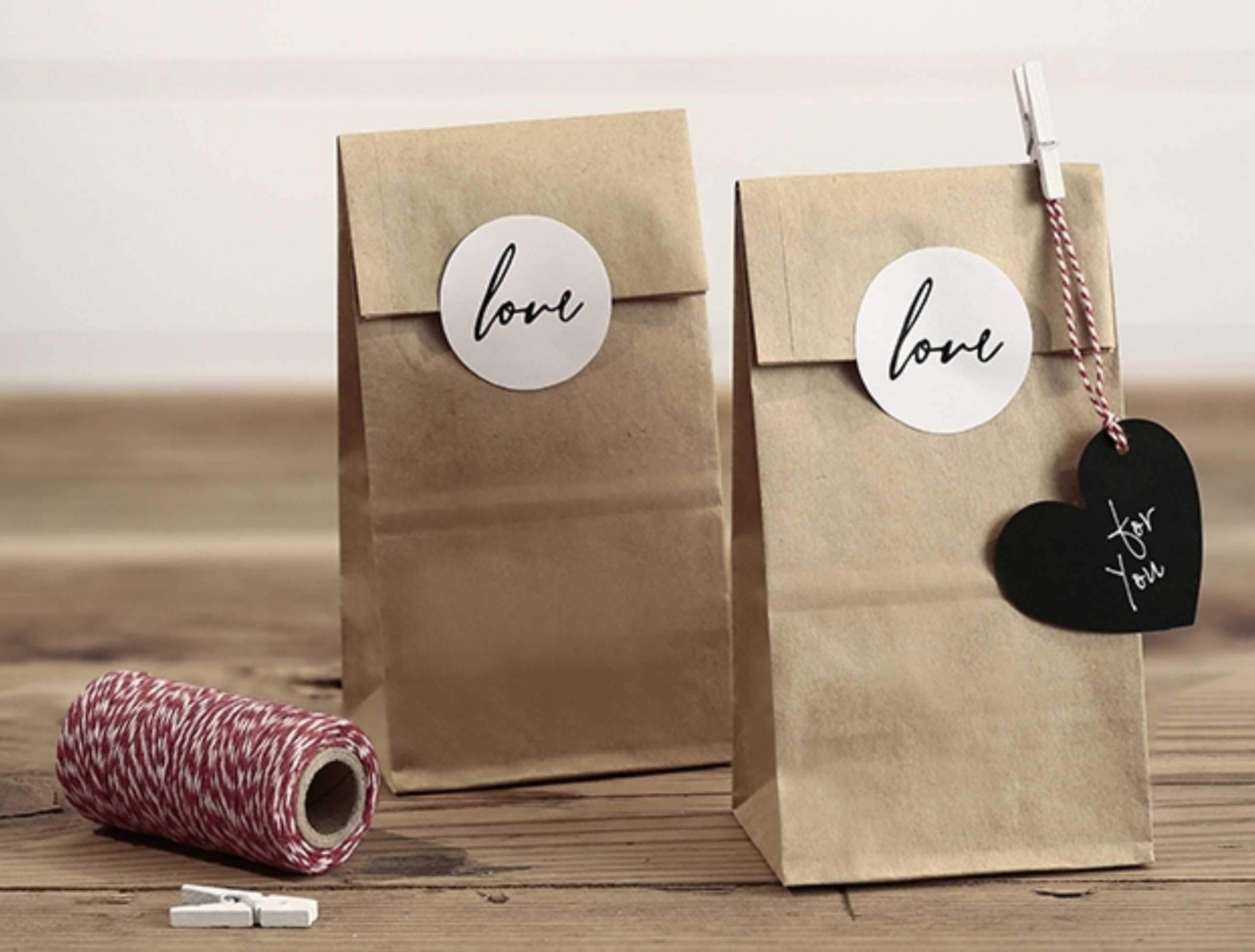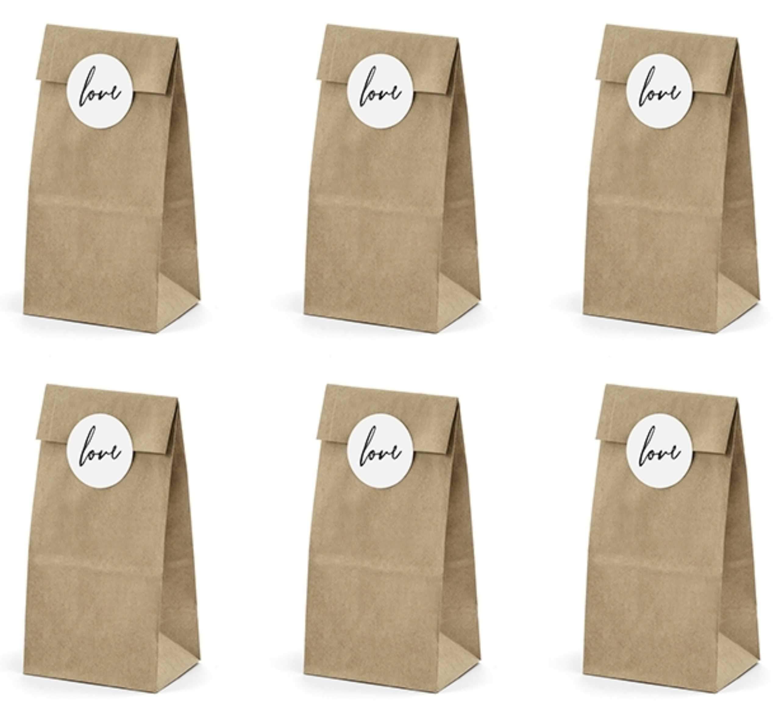 Σακουλάκια κραφτ με αυτοκόλλητο Love (6 τεμ)