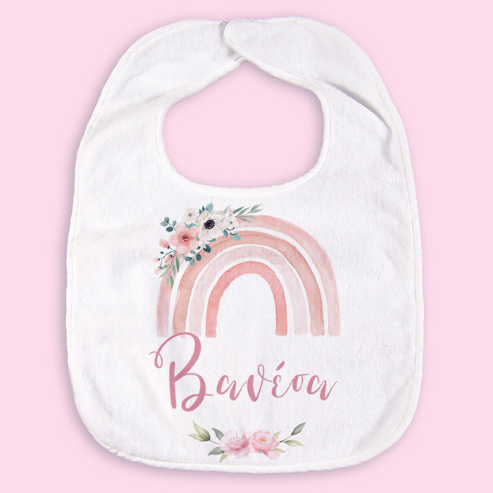 Προσωποποιημένη σαλιάρα με θέμα Ουράνιο τόξο κορίτσι για να φορά το γλυκό μωράκι σας!