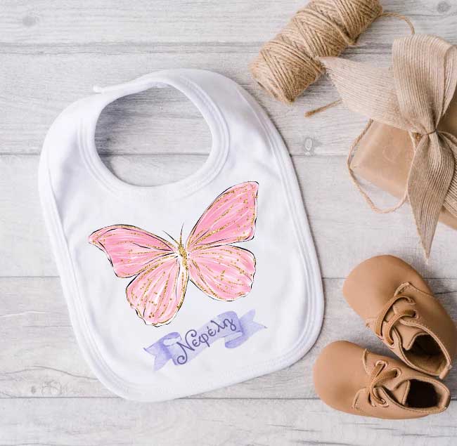 Προσωποποιημένη σαλιάρα ,ε θέμα Πεταλούδα για να φορά το μωράκι σας!
