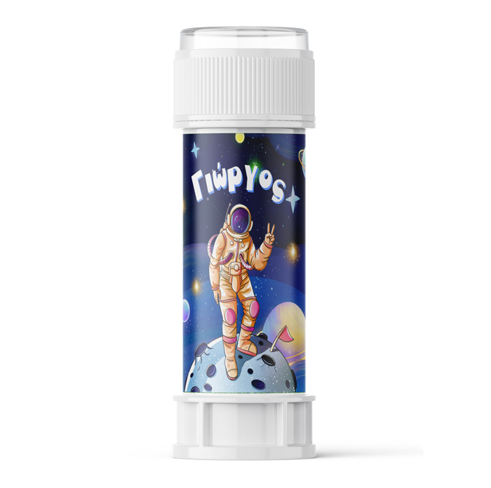 Προσωποποιημένες σαπουνόφουσκες με χάρτινο περιτύλιγμα Αστροναύτης, για να χαρίσετε ως δωράκι στα παιδάκια του πάρτυ.