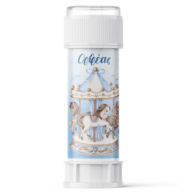 Προσωποποιημένες σαπουνόφουσκες με χάρτινο περιτύλιγμα και θέμα καρουζέλ, για να χαρίσετε ως δωράκι στους μικρούς καλεσμένους.