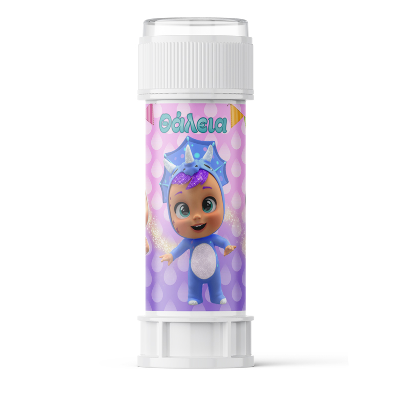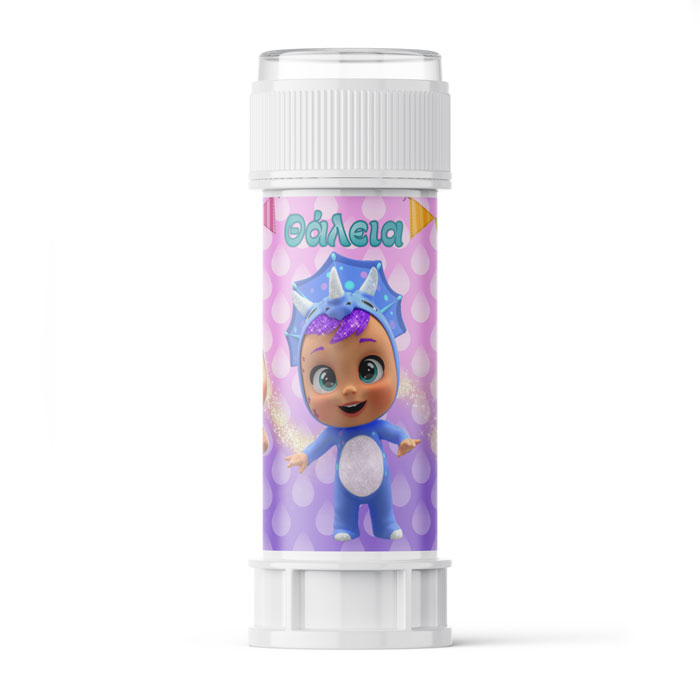 Προσωποποιημένες σαπουνόφουσκες με θέμα τα Κλαψουλίνια! Με χάρτινο περιτύλιγμα και το όνομα της επιλογής σου τυπωμένο επάνω για να χαρίσεις ως δωράκι στoυς μικρούς καλεσμένους του πάρτυ.