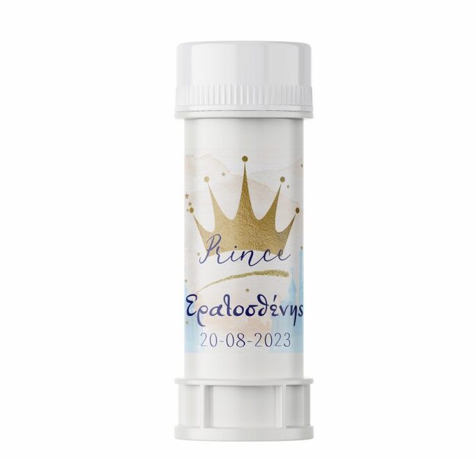 Προσωποποιημένες σαπουνόφουσκες με χάρτινο περιτύλιγμα και θέμα Κορώνα, για να χαρίσετε ως δωράκι στους μικρούς καλεσμένους.