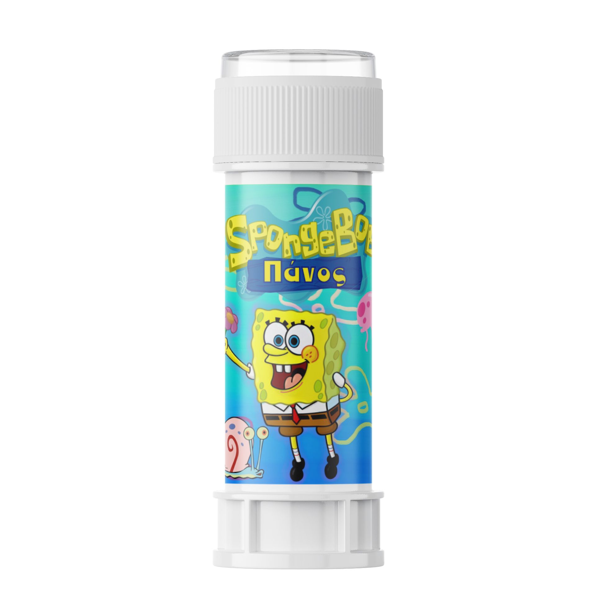 Χαρίστε ένα δωράκι στους μικρούς καλεσμένους! Θεματικές σαπουνόφουσκες Μπόμπ Σφουγγαράκης που μπορούν να γράφουν το όνομα του παιδιού!