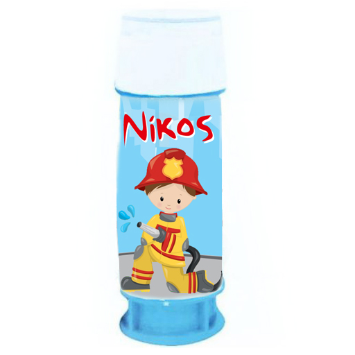 Προσωποποιημένες σαπουνόφουσκες με χάρτινο περιτύλιγμα Πυροσβέστης, για να χαρίσετε ως δωράκι στα παιδάκια του πάρτυ.