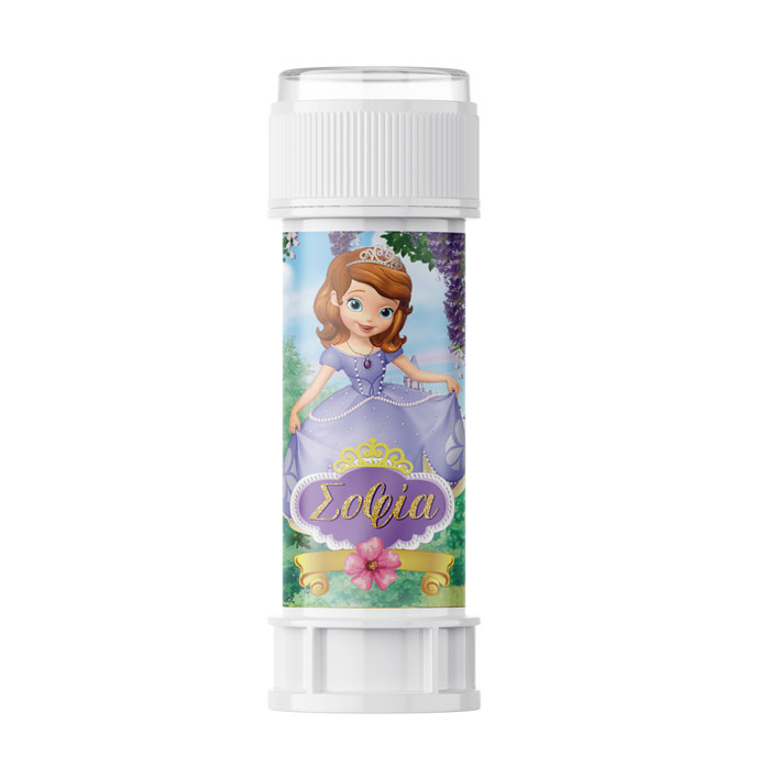 Χαρίστε ένα δωράκι στους μικρούς καλεσμένους! Θεματικές σαπουνόφουσκες με την Πριγκίπισσα Σοφία, που μπορούν να γράφουν το όνομα του παιδιού!