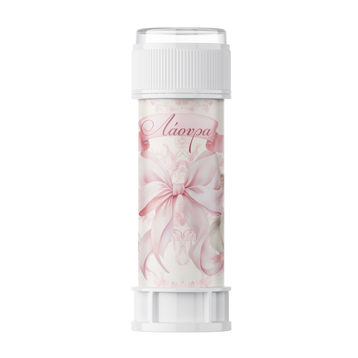 Προσωποποιημένες σαπουνόφουσκες με θέμα Ροζ Φιόγκος για να χαρίσετε ως δωράκι στα παιδάκια της βάπτισης ή ή για να τις φτιάξετε ως μπομπονιέρα.