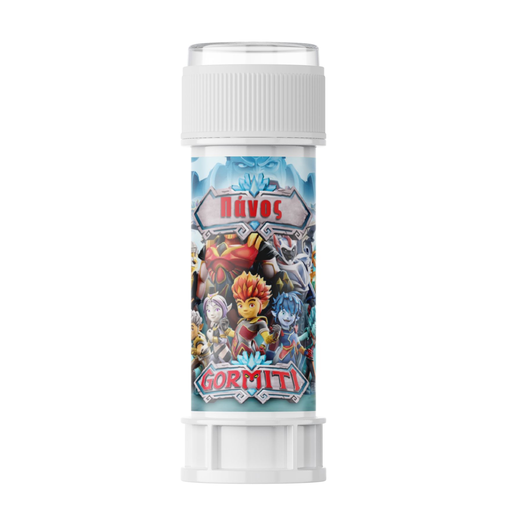 Προσωποποιημένες σαπουνόφουσκες με χάρτινο περιτύλιγμα Gormiti, για να χαρίσετε ως δωράκι στα παιδάκια του πάρτυ.