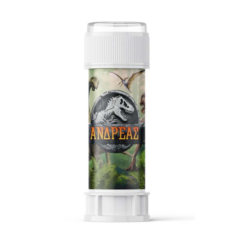 Προσωποποιημένες σαπουνόφουσκες με χάρτινο περιτύλιγμα και με θέμα το Jurassic World, για να χαρίσετε ως αναμνηστικό δωράκι στα παιδάκια του πάρτυ!