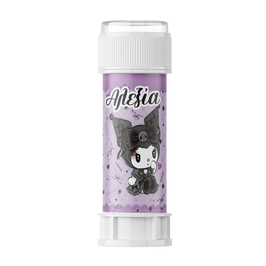 Προσωποποιημένες σαπουνόφουσκες με χάρτινο περιτύλιγμα και θέμα Kuromi, για να χαρίσετε ως αναμνηστικό δωράκι στους μικρούς καλεσμένους του πάρτυ.