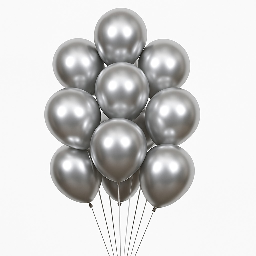 Εντυπωσιακό σετ μπαλόνια σε μεταλλικό ασημί χρώμα ιδανική επιλογή για έναν μοναδικό στολισμό σε κάθε περίσταση!