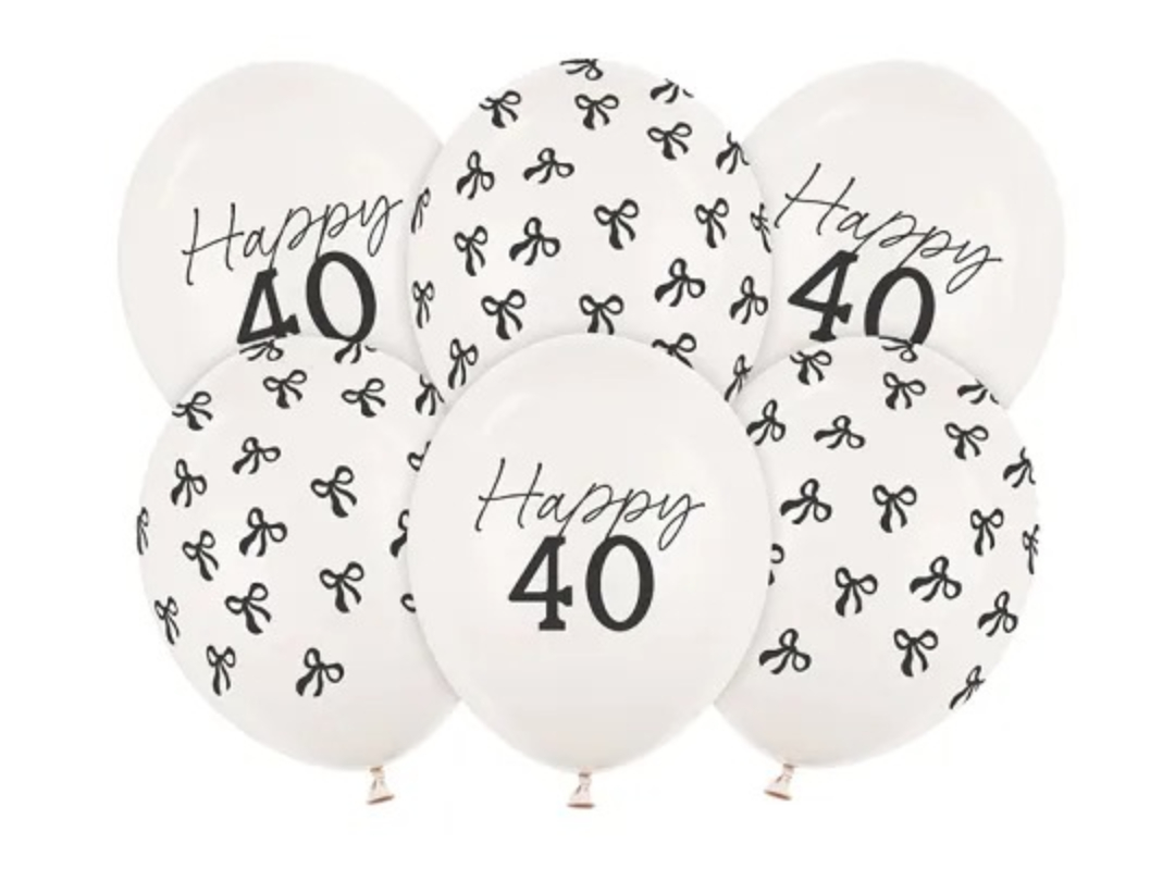 Γιορτάστε τα 40ά γενέθλια με αυτό το εορταστικό σετ από 6 μπαλόνια latex, με τύπωμα “Happy 40”!