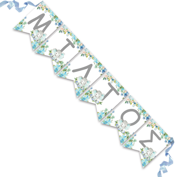 Προσωποποιημένα διακοσμητικά σημαιάκια με μύτη με θέμα Φλοράλ Ελεφαντάκι.
