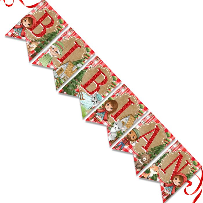 Σημαιάκια με το όνομα του παιδιού και θέμα την Κοκκινοσκουφίτσα!