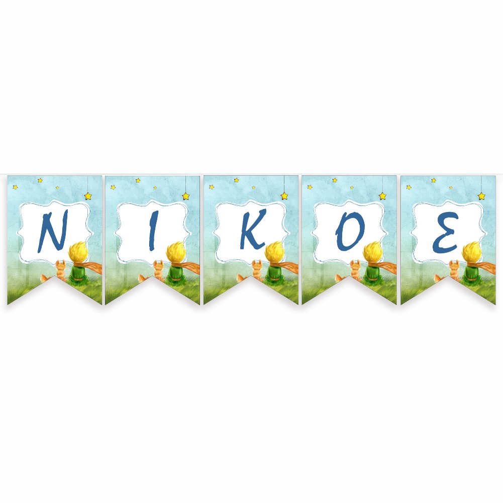 Διακοσμητικά σημαιάκια με το όνομα του μωρού σας και θέμα τον Μικρό Πρίγκιπα.