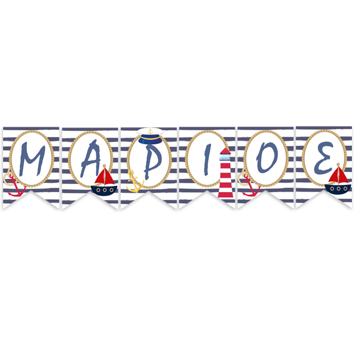 Διακοσμητικά σημαιάκια με το όνομα του παιδιού και θέμα Ναυτικό!