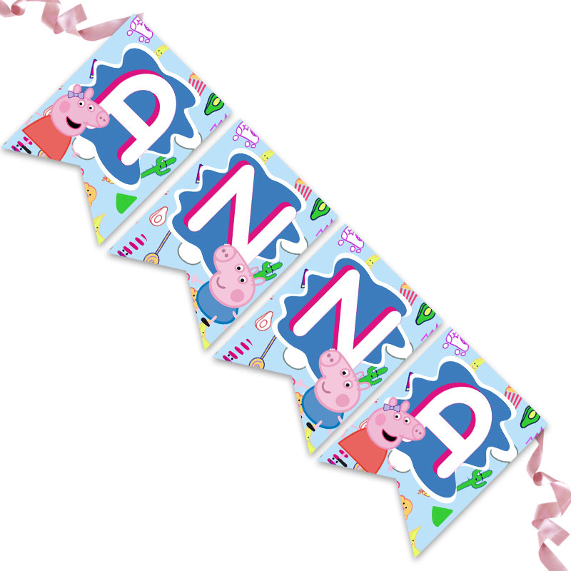 Διακοσμήσετε εντυπωσιακά το χώρο του πάρτυ ή το παιδικό δωμάτιο με σημαιάκια με το όνομα του παιδιού και θέμα την Πέππα το γουρουνάκι και την παρέα της!
